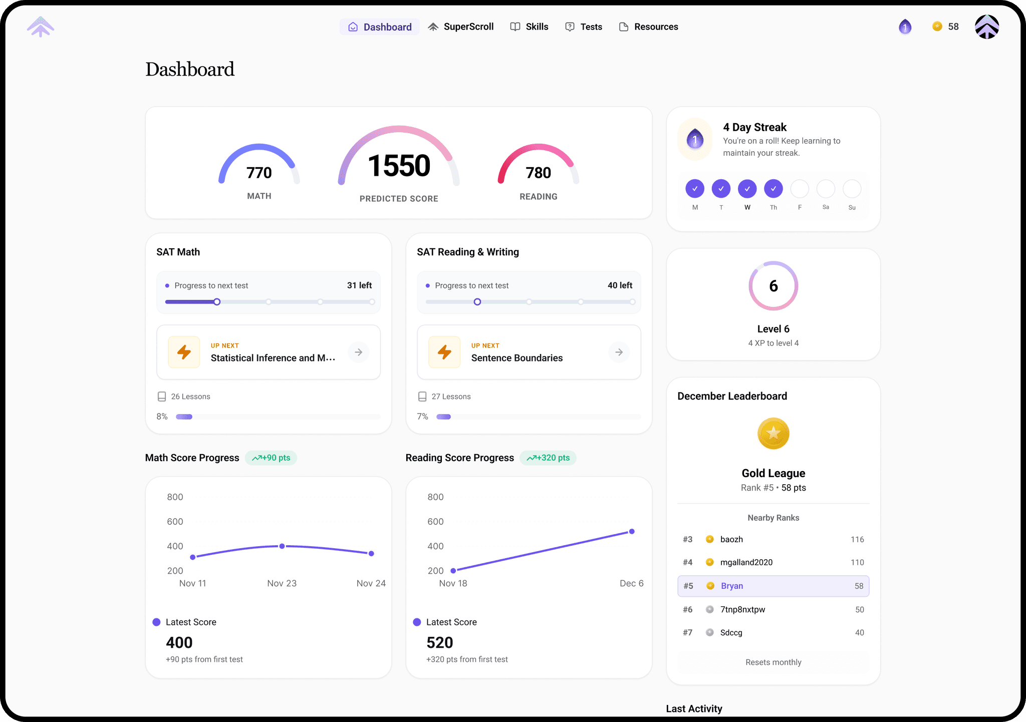 Traditional prep treats every topic equally. We don’t. SuperScored targets the 3–5 skills that will move your score the most — using the same precision sequence our Stanford founders used to reach 1600.