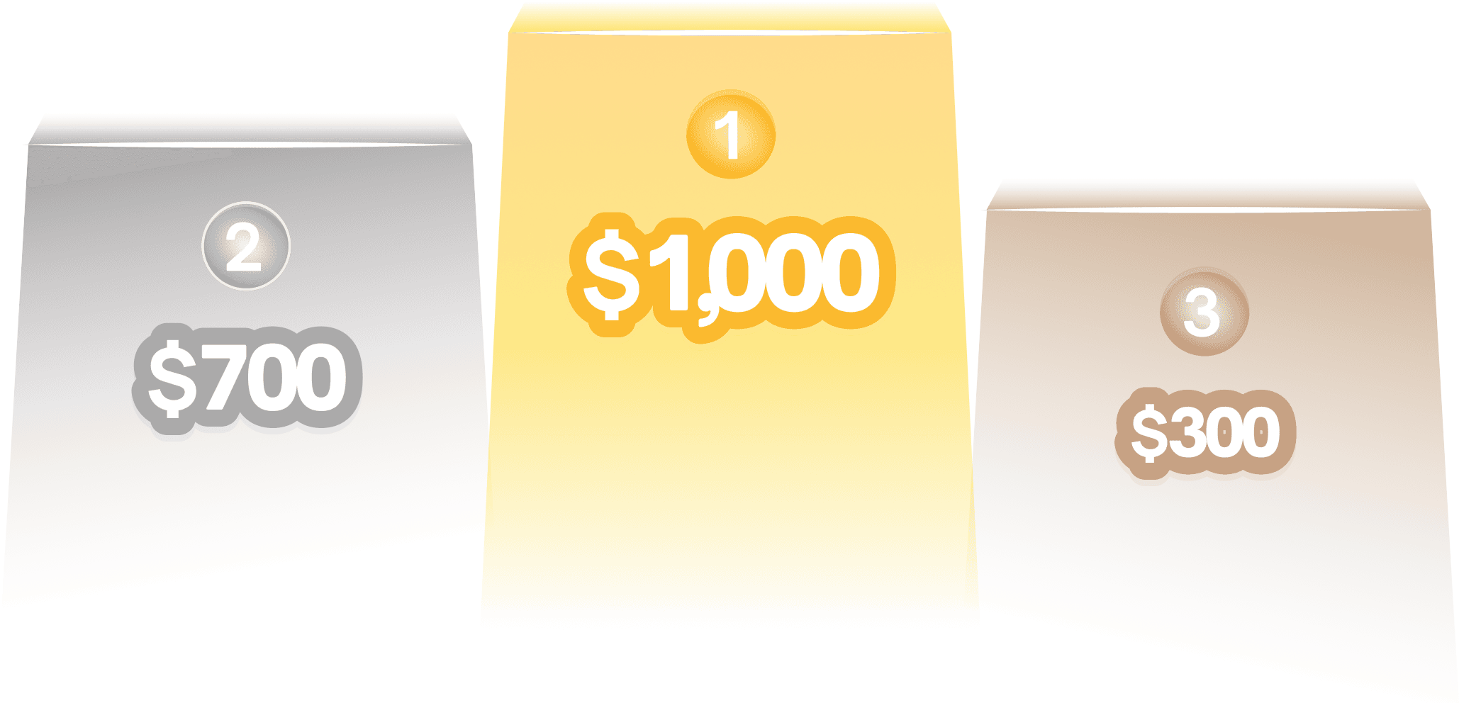 If there are ties, prize money is split equally among tied participants. For example, if two people tie for 1st place, they each receive $850 ($1,700 ÷ 2)